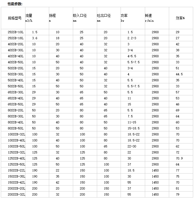 口径:25—200mm,扬程:80m,流量:3.6—200m3/h