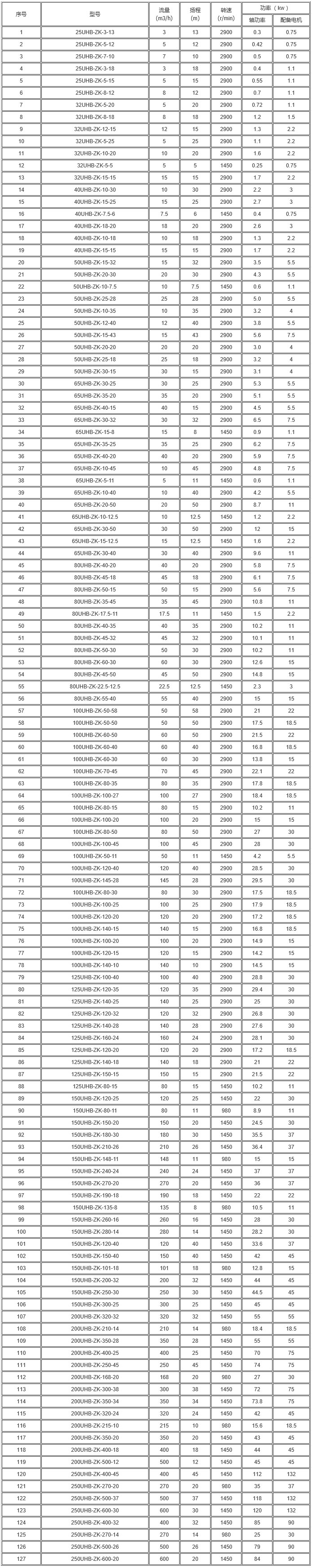 UH:超高分子聚乙烯 B:离心泵