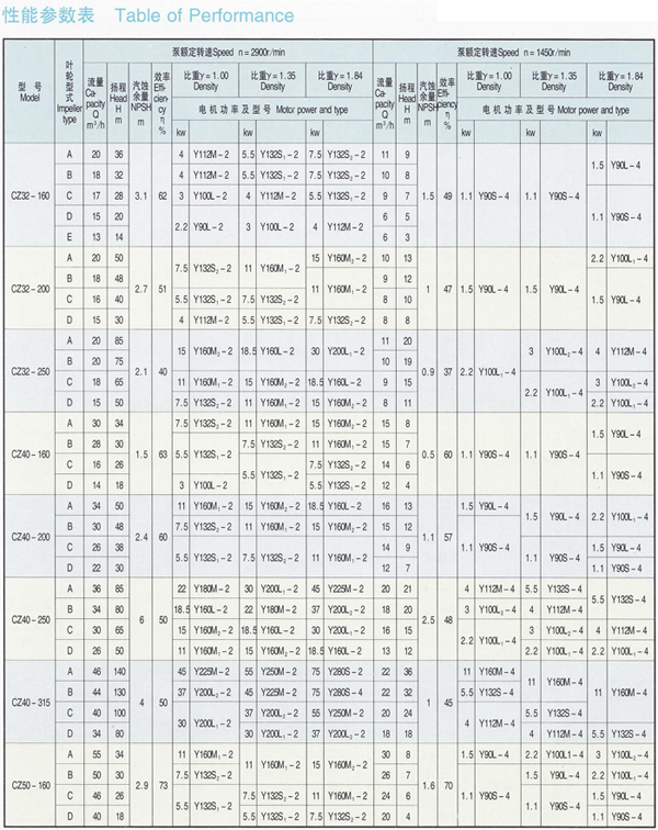 CZ系列标准化工泵的性能范围包括了IH系列标准化工泵所有性能,其效率、汽蚀性能等指标均超过IH型泵,可与IH型泵进行单机互换。