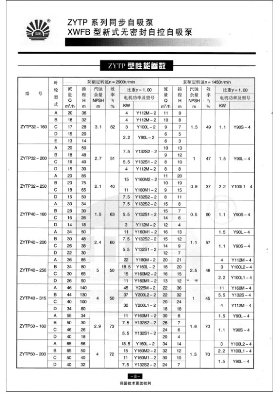 为了合理的配套电机,我们借鉴发达的先进经验,把水泵分为A、B、C种工况适应等级,本说明书中配套的电机功率,是根据A 级等级匹配的。 您如在B、C级工况使用,可根据具体情况,相应降低配套电机功率。
