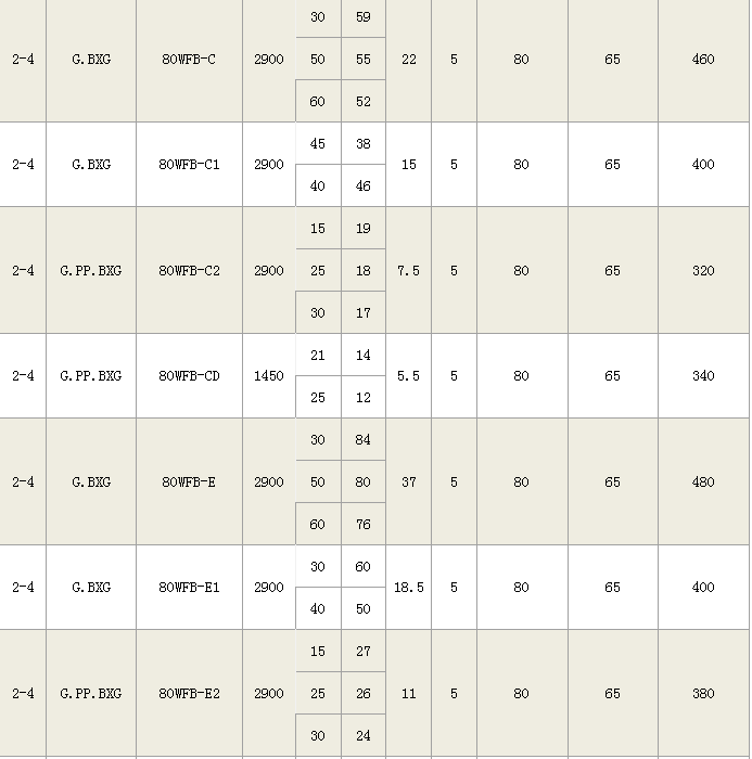 为了合理的配套电机,我们借鉴发达的先进经验,把水泵分为A、B、C三种工况适应等级,本说明书中配套的电机功率,是根据A 级等级匹配的。您如在B、C级工况使用,可根据具体情况,相应降低配套电机功率。