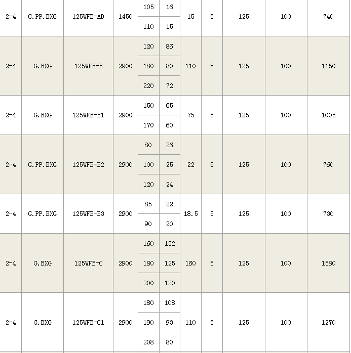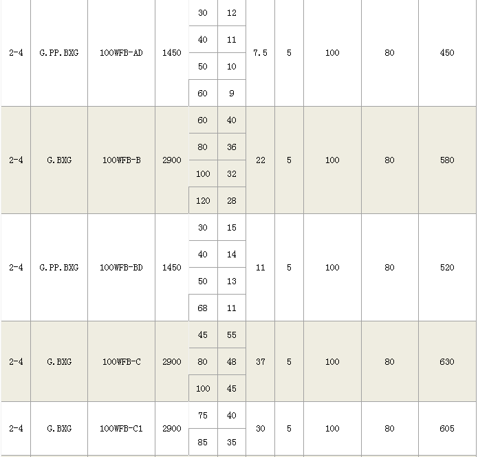 假设水泵造型是长方形防爆型,其它要求同上,这水泵的完整型号应写为“1.3PP50WFB-AD1”