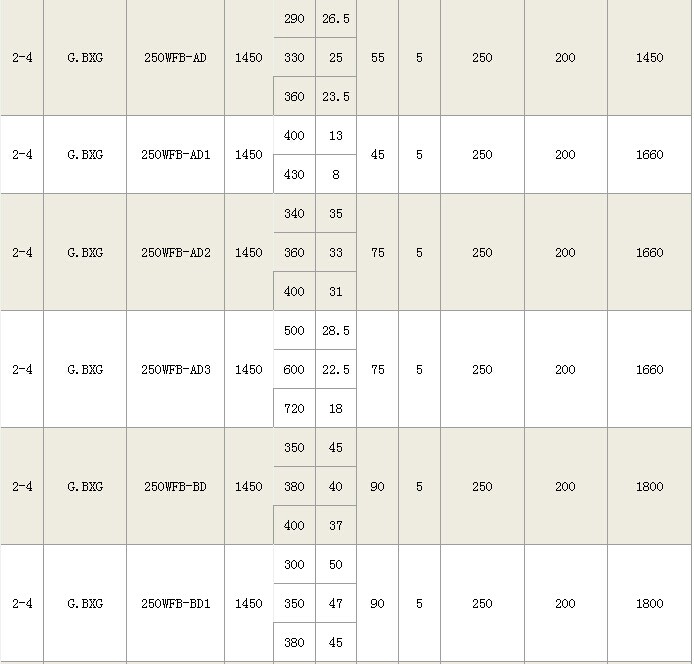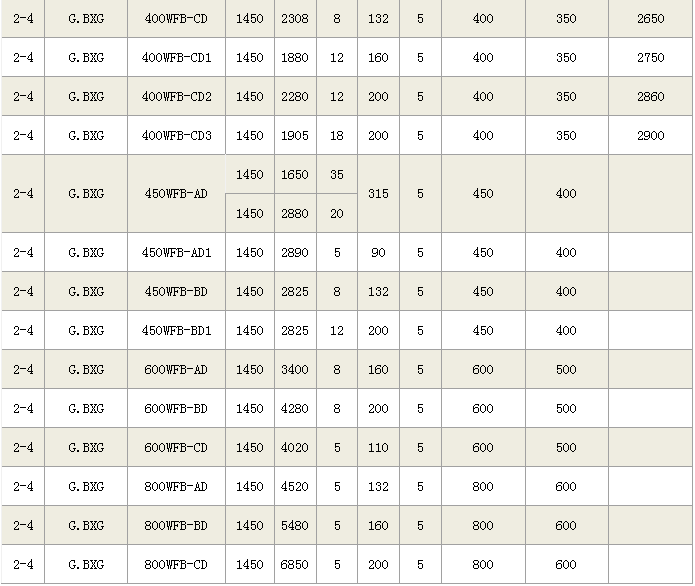 假设水泵造型是圆锥形防爆型,其它要求同上,这水泵的完整型号应写为“2.4PP50WFB-AD1”